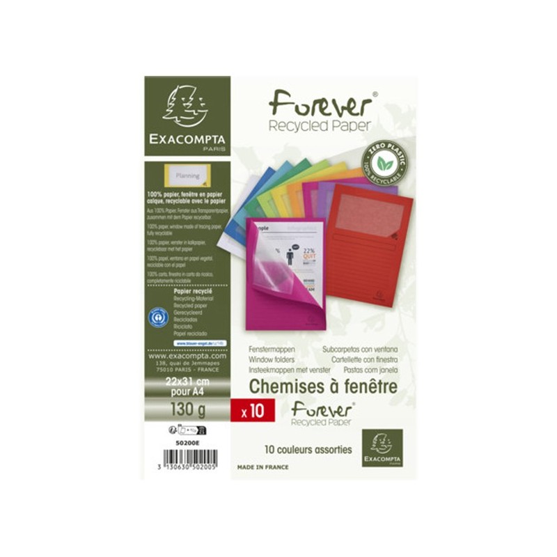 Cartellina a L con finestra Forever - 130g - A4 - colori assortiti - Exacompta - conf. 10 pezzi