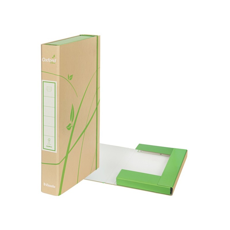 Cartella progetti realizzata in carta 100% riciclata di elevata qualità adatta, dorso da 40 mm e chiusura con elastico piatto da 8 mm per un trasporto sicuro dei documenti in formato A4. Cartone da 2mm riciclato resistente. Certificata FSC.