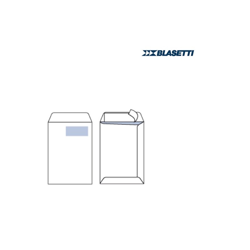 Busta a sacco bianca internografata con adesivo strip e finestra.