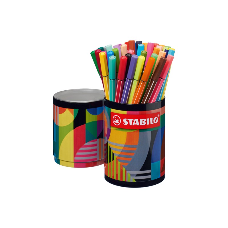 Barattolo in metallo Arty con 45 pennarelli Pen 68 in colori assortiti.