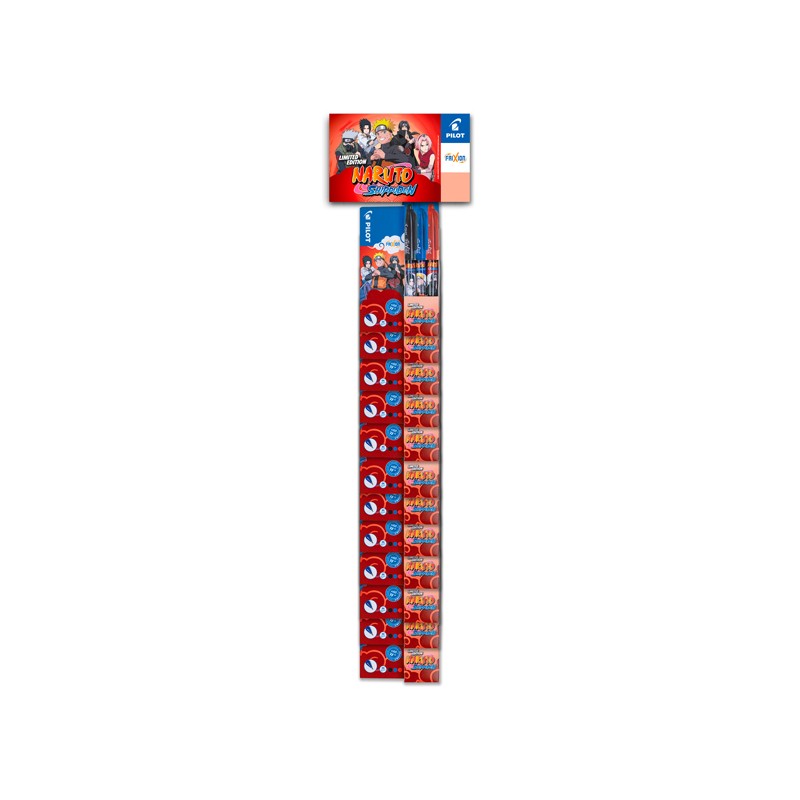 Modulo espositivo appendibile con 6 set da 3 penne cancellabili Frixion Ball e 6 set da 3 penne Frixion Ball Clicker, edizione limitata Naruta. Punta 0.7mm, colori assortiti: nero/rosso/blu.
