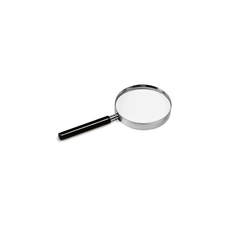 Lente di ingrandimento in vetro con impugnatura in ABS colore nero. Diametro della lente 9cm. Ingrandimenti x 3.