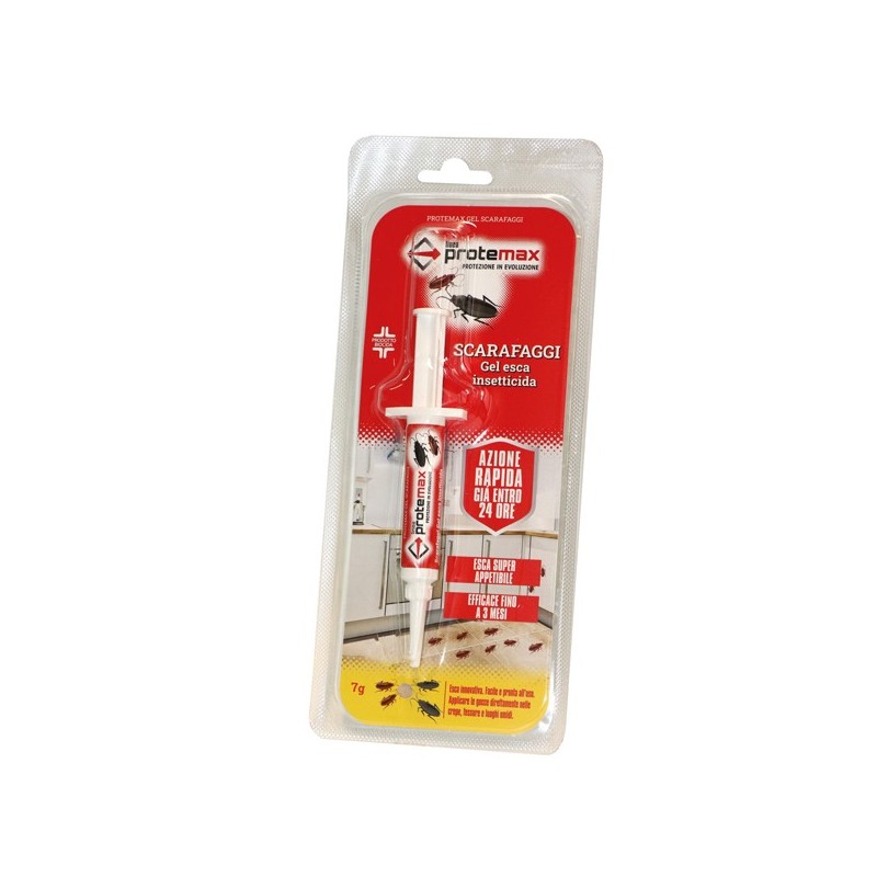 Esca gel insetticida pronta all’uso per il controllo di scarafaggi con sostanze ad alta appetibilità. Rimane morbido a lungo, garantendo la sua efficacia fino a 3 mesi dall’applicazione. Indicato per: il controllo degli scarafaggi all’interno di abitazioni e di edifici residenziali o commerciali. Agisce per ingestione dimostrando la propria azione già nelle prime 24 ore fino al controllo dell’intera popolazione entro 1 settimana dall’applicazione. Dose: applicare il prodotto in gocce dove si denota la presenza di scarafaggi secondo i dosaggi indicati.1-3 gocce ogni metro quadrato Ø 6-7mm. Aree d’impiego: all’interno degli edifici, in crepe e fessure. Composizione: Imidacloprid 2,19% (2,15% puro) Registrazione: Autorizzazione del Ministero della Salute n° IT/2018/00526/AUT DI LIBERA VENDITA.