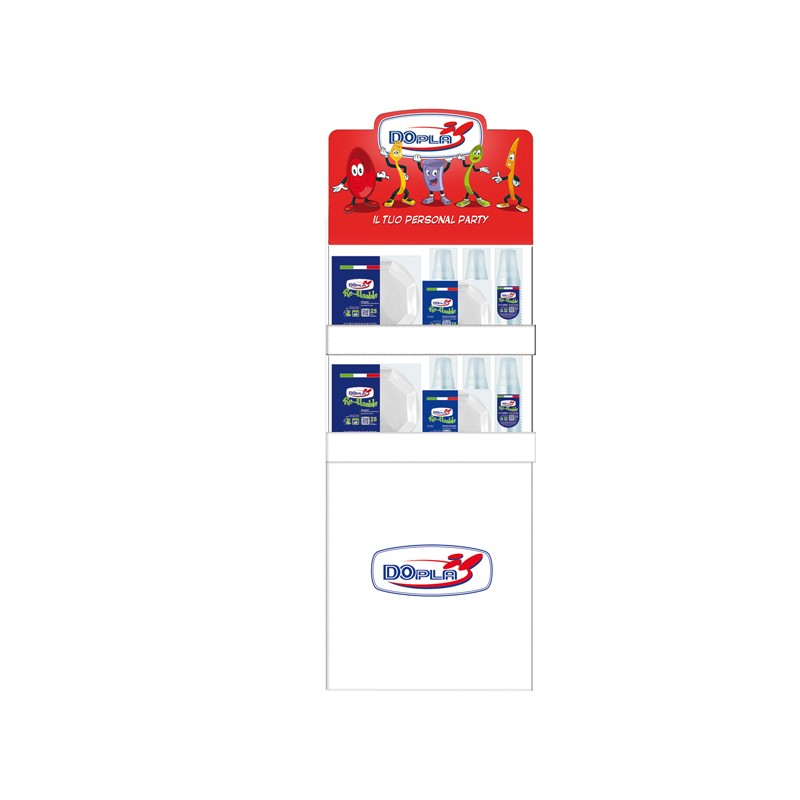 Espositore da terra 60cm x 40cm x H1,65mt (incluso crowner 37cm). Espositore con 2 vasche, realizzato in cartone, stabile e facile da montare. Istruzioni incluse.