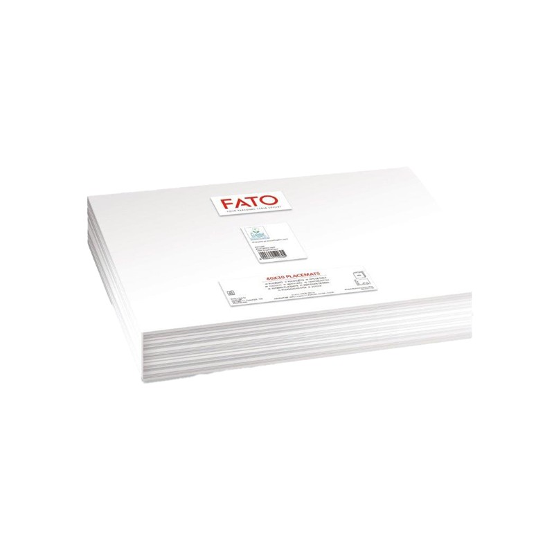 Confezione da 480 tovagliette in fibra riciclata 40x30cm. 1 velo. Grammatura: 35gr. Colore: bianco. Certificato Ecolabel. Idoneo al contatto alimentare.