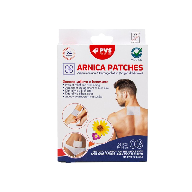 Cerotti per dolori articolari e muscolari con Arnica Montana e Harpagophytum (Artiglio Del Diavolo). Per il trattamento cutaneo delle zone articolari svolgendo una azione protettiva delle aree del corpo affette da dolori muscolari, articolari e contratture di varia natura, quali dolori reumatici, traumi sportivi, torcicollo e lombalgie. Vegan. La speciale tecnologia garantisce l'azione del cerotto fino a 24 ore.