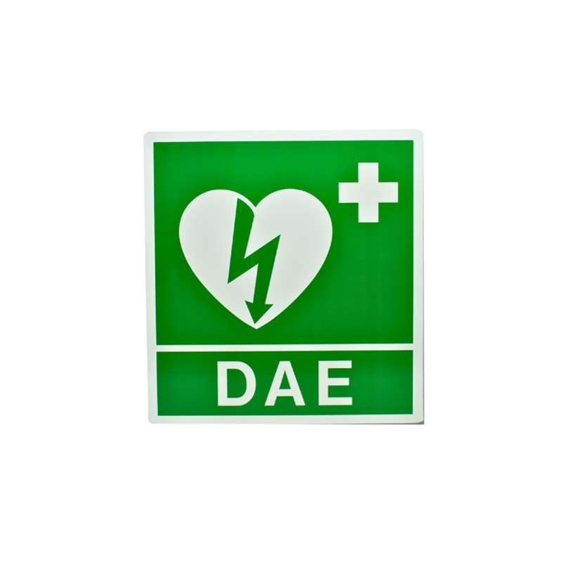 Cartello in foglio di alluminio con spessore 5/10. Preverniciato di bianco con serigrafia in colore verde. Preforato per attacco a parete. Conforme alla normativa UNI EN ISO 7010:2012. Dimensioni: 34x36cm.