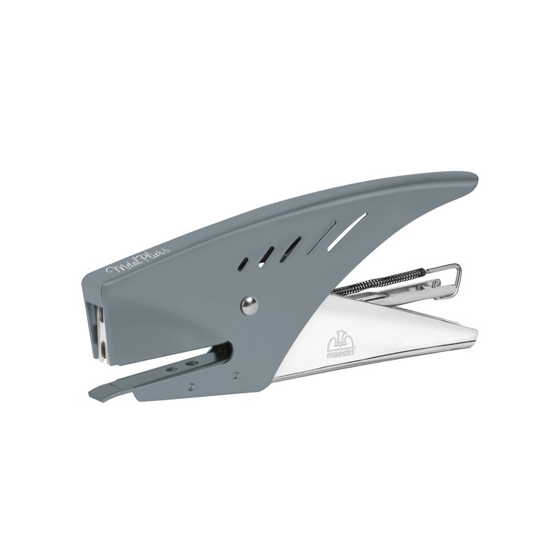 Cucitrice a pinza per ufficio costruita interamente con componenti in metallo tranciato di alta qualità. Design moderno ed accattivante con la parte superiore verniciata e la parte inferiore lucida. Le due maniglie arrotondate sono state concepite per avere la massima facilità d’utilizzo ed ottenere con un minimo sforzo una cucitura morbida e precisa. Tipo di punto: passo 6 mm. Tipo di cucitura: punto chiuso. Profondità cucitura: 45 mm. Capacità max. di cucitura: 10-12 fogli da 80 gr./m². Tipo di carica: Dal retro con spingipunto estraibile.