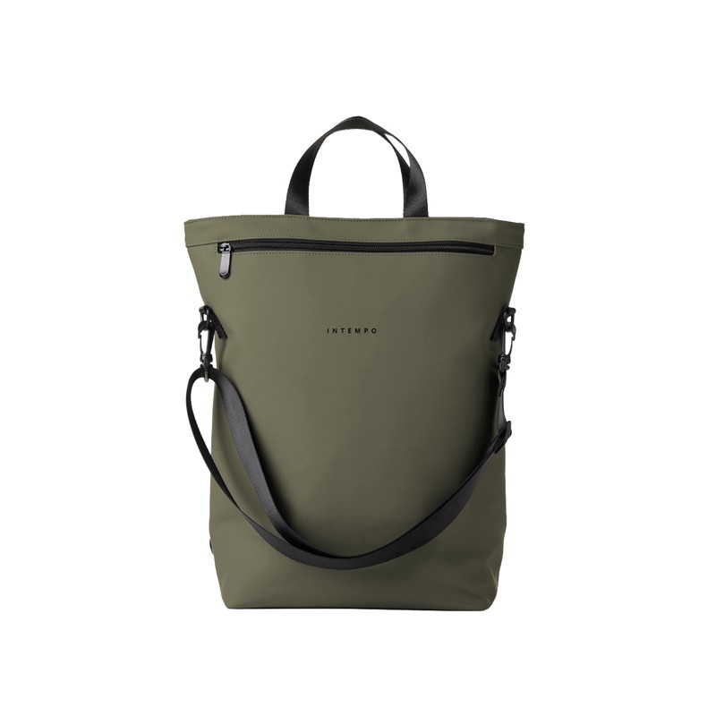 Borsa zainabile realizzata con materiale gommato resistente all'acqua e idrorepellente. Dotata di grande vano centrale e tasca frontale con zip. Chiusura superiore con zip. Tracolla removibile e tracolle zaino nascoste. Incluso guscio porta notebook 15".