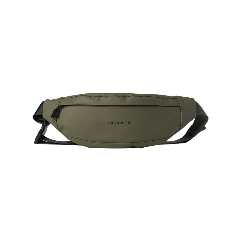 Marsupio realizzato con materiale gommato resistente all'acqua e idrorepellente. Dotato di vano con tasca segreta e tasca posteriore con zip. indossabile a marsupio o a tracolla.
