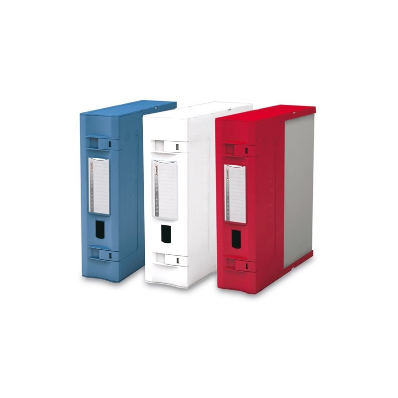 Scatole archivio Combi Box E600 realizzata in Trilex (materiale a tre strati che garantisce lunga durata, leggerezza, rigidità, robustezza ed eleganza). Parte colorata realizzata in polipropilene spessore 2mm. Lentino porta etichetta trasparente sul dorso. Componibile, anche con la E500, sia orizzontalmente sia verticalmente grazie alle clips in dotazione. Chiusura patelle retraibili. Formato utile: 29,5x35,8cm.