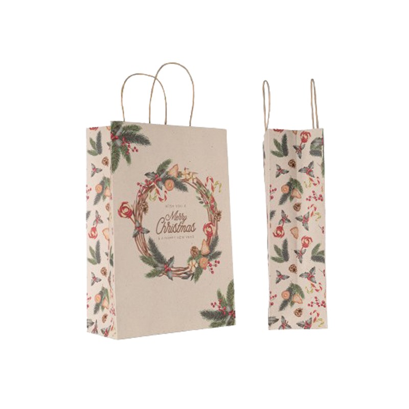 Shopper in carta da 135gr con manico in carta ritorta. Stampa a colori con motivo natalizio.