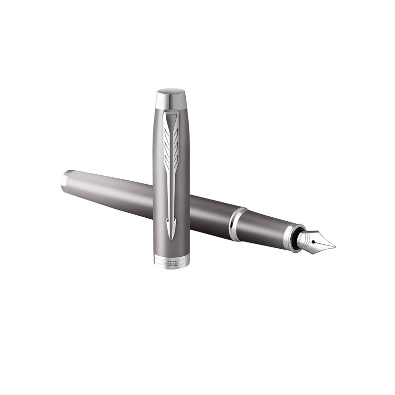 Stilografica Parker in acciaio inossidabile con finitura metallica satinata sfumata e completata con finiture cromate. Confezionata in elegante astuccio regalo. Fornita con cartuccia colore blu.