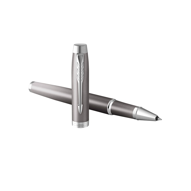 Penna Parker in acciaio inossidabile con finitura metallica satinata sfumata e completata con finiture cromate. Confezionata in elegante astuccio regalo. Fornita con refill colore nero.