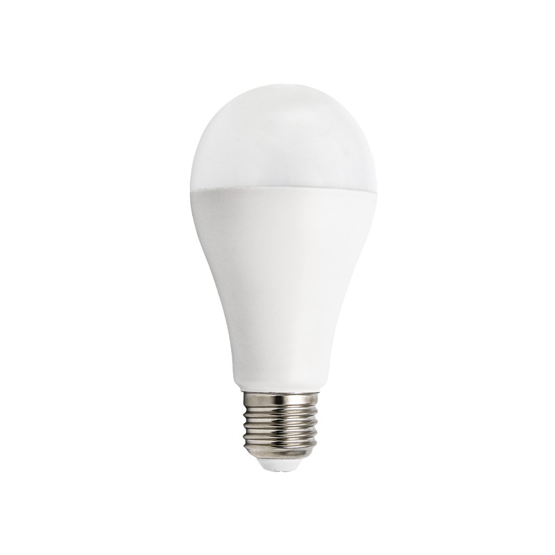 Lampadina LED a goccia Classe tipo F luce bianca fredda (6000K). Potenza 18W. Potenza equivalente 130W. Risparmio energetico 80%. Flusso luminoso (lumen): 1800. Cri >80. Tensione di lavoro: 220-240V. Attacco E27. Misure 65x134(L)mm. Non dimmerabile. Angolo di apertura: 180°. Certificato CE. IP20.