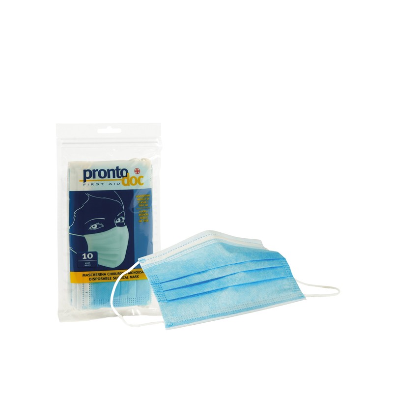 Confezione da 10 mascherine chirurgiche monouso tipo IIR (UNI EN 14683:2019) composte da 3 strati in tessuto TNT. Ottima vestibilità, idrorepellente, autoestinguente e ipoallergenica (senza lattice e fibre di vetro).Colore: bianco lato interno, celeste lato esterno. Dimensioni: 18x10cm. Conforme a norma ISO 14683 e ISO 10993. Prodotto non sterile. Confezionate in buste stampate con chiusura a zip.