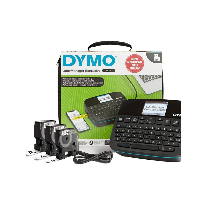 Etichettatrice facile da poter usare ovunque. Utilizzando il touchscreen a colori e la tastiera stile computer oppure usufruendo del collegamento a PC e Mac® per formattare, creare e stampare le etichette in modo rapido. Caratteristiche: Ampio schermo ad alta risoluzione per una leggibilità senza pari Design salvaspazio con dimensioni compatte e superficie arricchita da una texture tattile per una presa ergonomica Portabilità senza sforzo con una batteria ricaricabile agli ioni di litio Stampa etichette larghe fino a 24 mm Compatibilità istantanea con molteplici dispositivi (PC, Mac, Smartphone e Tablet) e sistemi operativi (Android/iOS) Accesso diretto all'app DYMO® LabelManager® Executive Connect e al software DYMO® Connect for Desktop. La valigetta include: - LabelManager™ EXECUTIVE 640 CB - 3x D1® cassetta per etichette nero su bianco, 12mm x 7m | 19mm x 7m | 24mm x 7m - Cavo USB-C - Li-ion batteria ricaricabile - Borsa softshell - SKU 2202121