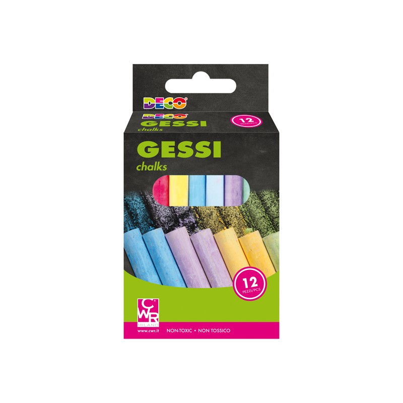 Gessetti colorati antipolvere per lavagna. Compatti e molto resistenti, sono cancellabili e non stridono. Tratto intenso.