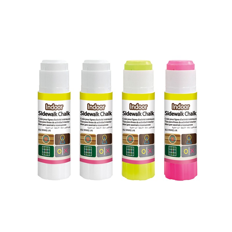 Gessi da pavimento per interno. Facilmente rimovibili con un panno umido dalla maggior parte delle superfici non porose. Colori brillanti, pratici maxi stick facilmente impugnabili dai bambini. Astuccio da 4 gessi in 3 colori.