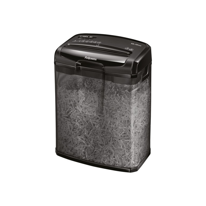 Distruggidocumenti M-7CM. Distrugge fino a 7 fogli per volta (70gsm) in frammenti di 4x35mm (Livello di sicurezza P-4). Distrugge continuamente per 5 minuti prima di una pausa di raffreddamento di 30 minuti. Cestino da 13 litri con coperchio rimovibile. Distrugge anche carte di credito e graffette. Garanzia: 2 anni machina / 3 anni lame. Dimensioni prodotto : 387 x 320 x 186mm.