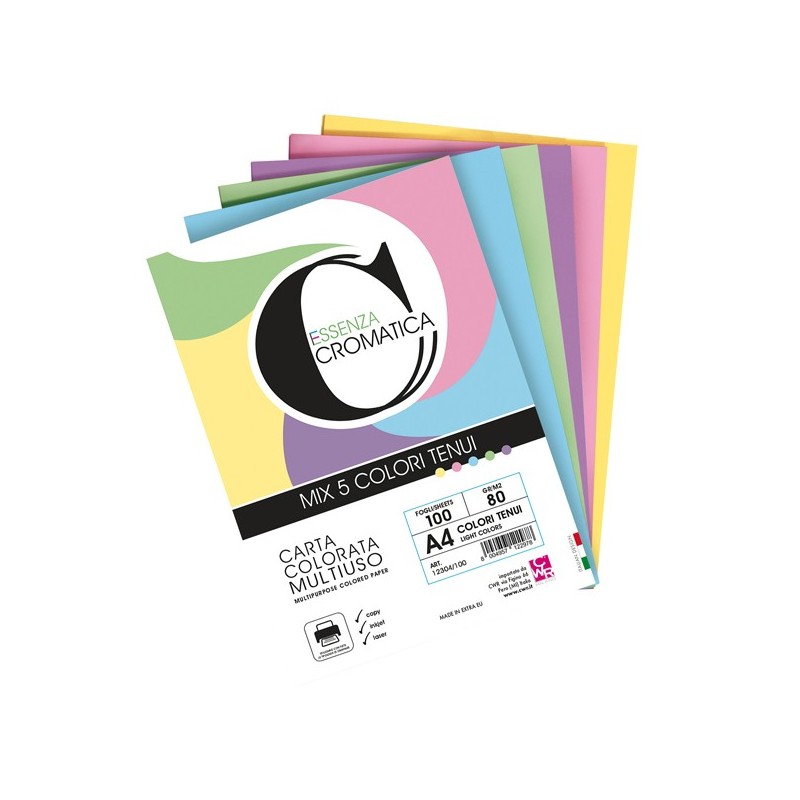 Risma 100 fogli, carta da 160gr, assortimento mix 5 colori tenui.