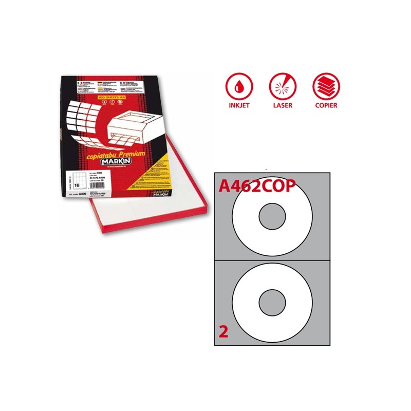 Scatola da 100fg da 21x29,7cm di etichette adesiva permanente bianche. Adatte per stampanti inkjet, laser e copy.