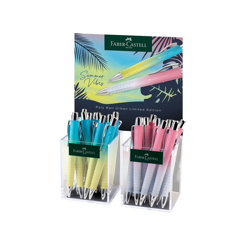 Penna a sfera a scatto Polyball con fusto triangolare ergonomico soft-touch e impugnatura antiscivolo. Punta in metallo.Refill XB per una scrittura più scorrevole. Inchiostro indelebile per documenti colore blu. Edizione speciale Urban Summer colori assortiti.