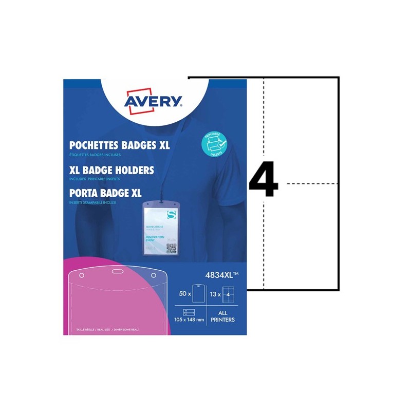 Questi porta-badge A6 in plastica sono il formato preferito per eventi: seminari, fiere, conferenze, congressi, ecc. Puoi stampare tantissime informazioni: inserire il tuo logo, il nome e la funzione del visitatore, il nome dell'evento, ma anche un codice a barre, una fototessera, ecc. Stampabili su entrambi i lati, puoi anche aggiungere una mappa della sede o il programma dell'evento sul retro. Bustina flessibile in plastica senza PVC con 3 perforazioni per adattarsi a qualsiasi tipo di cordoncino (singola o doppia clip). Fornito con inserti personalizzabili A6 (105 x 148 mm). -Il formato A6 consente di inserire maggiori informazioni -Fornito con inserti personalizzabili A6 (105 x 148 mm) in cartoncino -Inserti in cartoncino da 190 g/m² per una facilitare l'inserimento nel porta-badge, formato foglio A4 -Stampabili con laser e inkjet