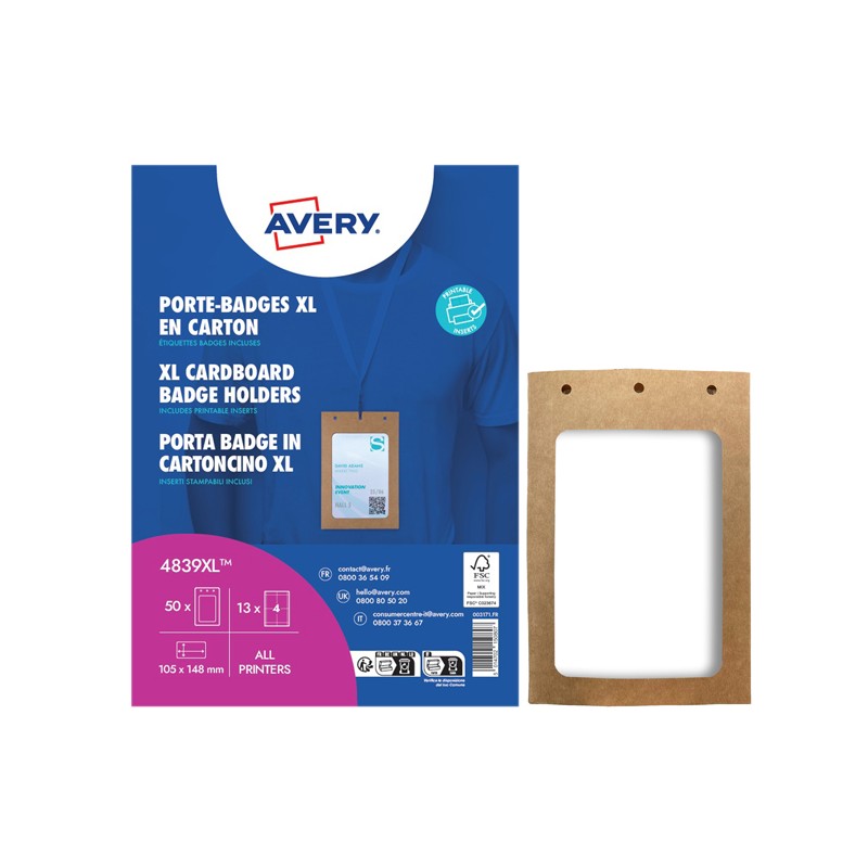 Questi porta-badge A6 in cartoncino sono il formato preferito per eventi: seminari, fiere, conferenze, congressi, ecc. Puoi stampare tantissime informazioni: inserire il tuo logo, il nome e la funzione del visitatore, il nome dell'evento, ma anche un codice a barre, una fototessera, ecc. Stampabili su entrambi i lati, puoi anche aggiungere una mappa della sede o il programma dell'evento sul retro. Fornito con inserti personalizzabili A6 (105 x 148 mm). - Cartoncino resistente con 3 perforazioni per adattarsi a qualsiasi tipo di cordoncino (singola o doppia chiusura) - Fornito con 52 inserti personalizzabili A6 (105 x 148 mm) in cartoncino - Inserti in cartoncino da 190 g/m² per una facilitare l'inserimento nel porta-badge, formato foglio A4 - Stampabili con laser e inkjet Lingua Italiano Questi porta-badge A6 in plastica sono il formato preferito per eventi: seminari, fiere, conferenze, congressi, ecc. Puoi stampare tantissime informazioni: inserire il tuo logo, il nome e la funzione del visitatore, il nome dell'evento, ma anche un codice a barre, una fototessera, ecc. Stampabili su entrambi i lati, puoi anche aggiungere una mappa della sede o il programma dell'evento sul retro. Bustina flessibile in plastica senza PVC con 3 perforazioni per adattarsi a qualsiasi tipo di cordoncino (singola o doppia clip). Fornito con inserti personalizzabili A6 (105 x 148 mm). -Il formato A6 consente di inserire maggiori informazioni -Fornito con inserti personalizzabili A6 (105 x 148 mm) in cartoncino -Inserti in cartoncino da 190 g/m² per una facilitare l'inserimento nel porta-badge, formato foglio A4 -Stampabili con laser e inkjet -Stampabili con laser e inkjet