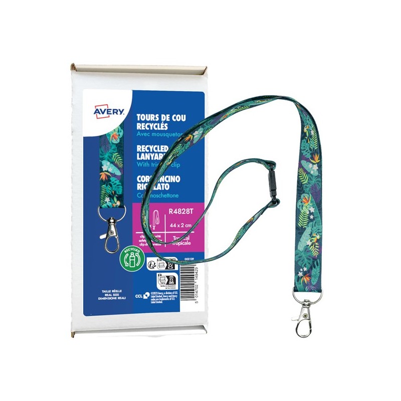 Cordoncino per portabadge - in Rpet - fantasia tropicale - 440 x 20 mm - Avery - Conf. 10 pezzi