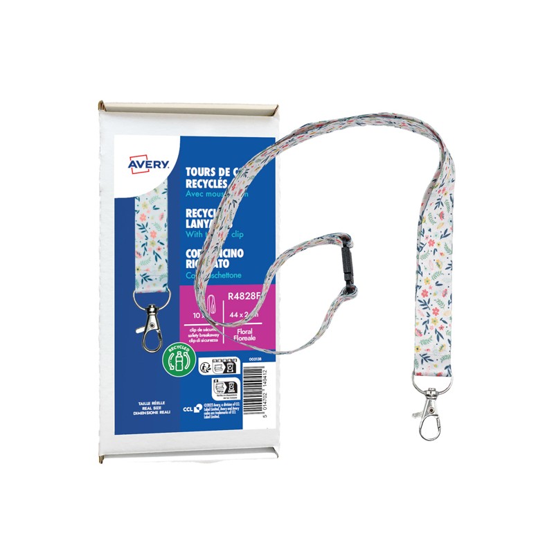 Cordoncino per portabadge - in Rpet - fantasia floreale - 440 x 20 mm - Avery - Conf. 10 pezzi