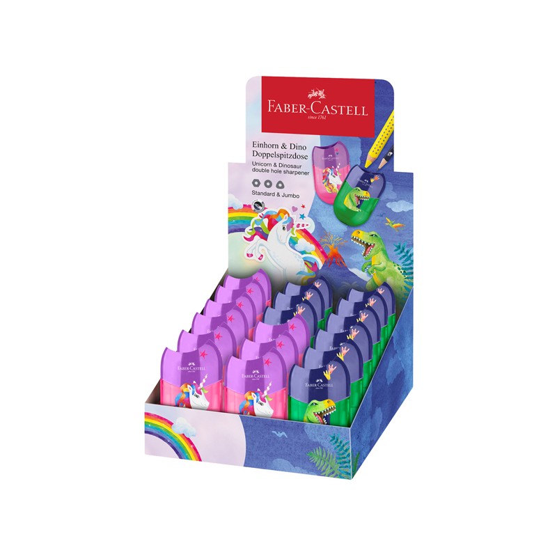 Temperino con 2 fori per tutte le forme di matita più diffuse. Dotato di serbatoio che impedisce la fuoriuscita dei rifiuti.