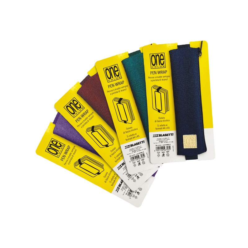 Astuccio con elastico regolabile da avvolgere al quaderno è perfetto per avere sempre con sè tutto l'indispensabile per scrivere. Colori assortiti: blu, bordeaux, verde e lilla. Dimensioni: 18x5x1cm.