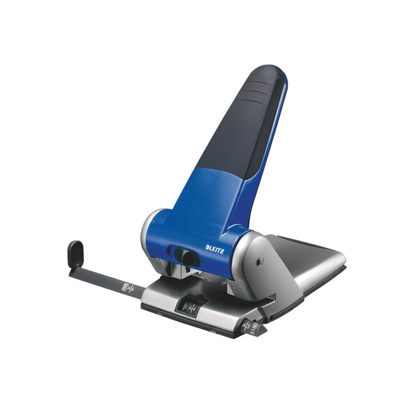 Perforatore a 2 fori passo 8cm con guida regolabile. Forma ergonomica e inserti in gomma soft grip consentono una presa sicura e uno sforzo ridotto per la perforazione. Dotato di dispositivo bloccaggio leva di perforazione. Foro da 5,5mm.