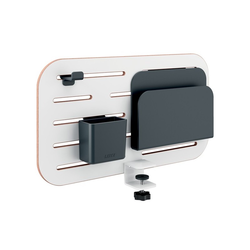Pannello forato piccolo - per scrivanie compatte Sit-Stand - con portapenne, gancio e portariviste - 42 x 25 x 0,8 cm - grigio