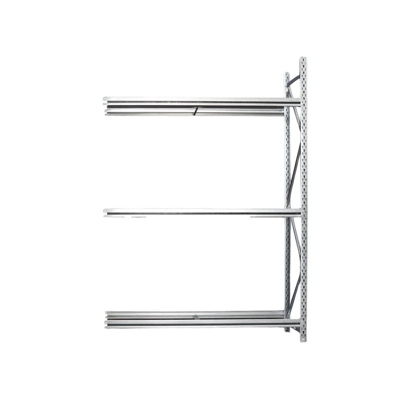 Scaffalatura adatta allo stoccaggio di pneumatici con diam. da mm.650 a mm.800, in lamiera di acciaio di prima scelta certificata e profilata a freddo con acciaio zincato a caldo secondo procedimento SENDZIMIR, adatte a operazioni svolte manualmente. Le portate indicate si intendono per carichi uniformemente distribuiti. Kit estensione 1500x500x2200h 3 livelli (misura lunghezza effettiva 1555x500x2200h)
