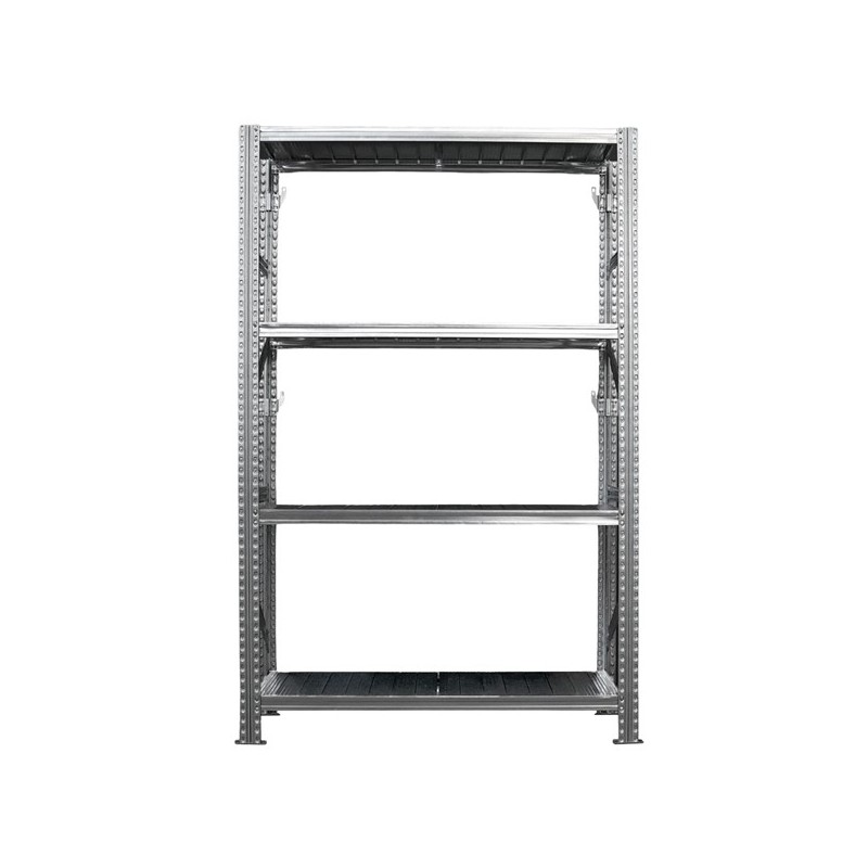 Scaffalatura ad incastro in lamiera certificata 3.1 e profilata a freddo con acciaio zincato a caldo secondo procedimento SENDZIMIR, adatte a operazioni svolte manualmente. Kit iniziale 1200x500x1972h 4 piani (misura lunghezza effettiva 1306x500x1972h) Campata iniziale composta da: n.2 art.S1340N fiancate smontate 1972x500 con 2 montanti sp.12,5/10, 2 traversini, 2 diagonali, 2 basi e 2 tasselli a pavimento. Portata nominale kg.2000. n.4 art.S1575 piano 1200x500 con 2 correnti mm.47h sp 5/10, 2 pianetti di 600x600x12h sp.4/10 e 4 ganci di sicurezza. Portata nominale kg.220 cad. n.4 art.S1310 staffe fissaggio muro, tasselli esclusi