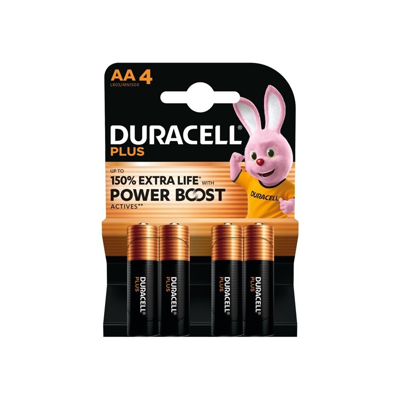 Batterie alcaline DURACELL PLUS POWERBOOST STILO (AA) 1500 in blister da 4 pezzi. Batterie composte da un mix di elementi (24 brevetti) pensato per dare maggiore potenza o maggiore durata a seconda dei bisogni del dispositivo.