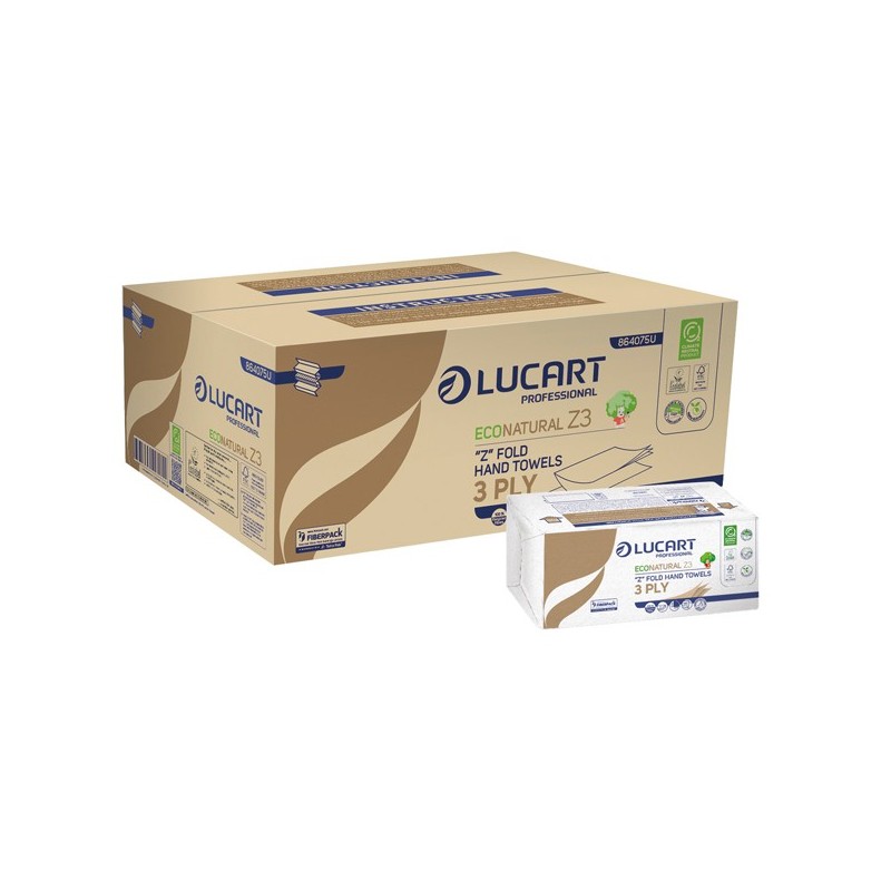 EcoNatural è la linea di prodotti realizzata in Fiberpack®, la materia prima ottenuta dal riciclo delle fibre di cellulosa presenti nei cartoni delle bevande. NUOVO CONFEZIONAMENTO IN CARTA- riciclata e riciclabile che rende il prodotto interamente plastic free. Certificazione Ecolabel. Asciugamani piegati a Z per estrazione singola. Colore avana in Fiberpack® 3 veli, 51g microgoffrato. Formato aperto: 23,5x21,5cm. Dati tecnici: Materia prima: Fiberpack® Idoneità al contatto alimentare: No Colore: Avana Goffratura: micro corda Veli: 3 Grammatura (g/m2): 17gr a velo Numero strappi: 198 Altezza strappo: 23,5cm Lunghezza strappo: 21,5cm Confezione da 198 asciugamani piegati