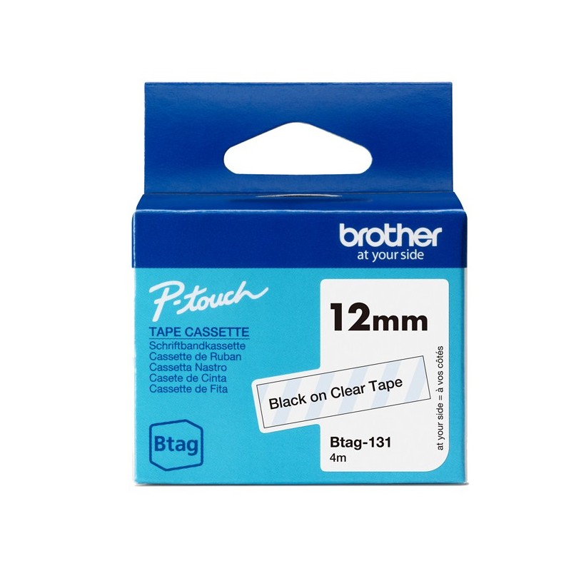 Nastro BTAG131 da 12MM nero su trasparente - lunghezza 4 m Compatibile con PT-N10 - PT-N20 -PT-N25BT