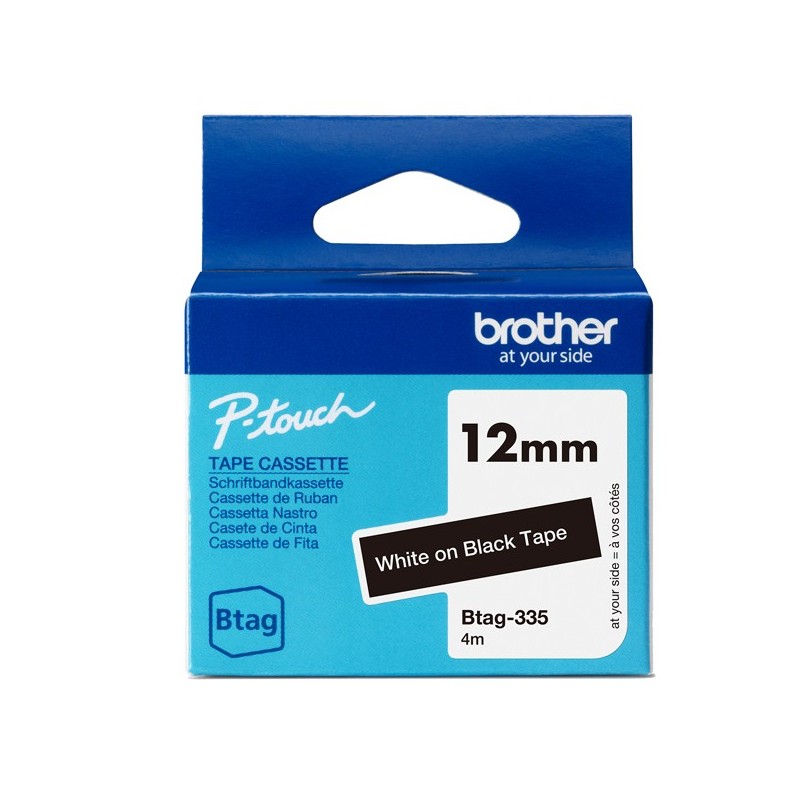Nastro BTAG335 da 12MM Bianco su Nero - lunghezza 4 m Compatibile con PT-N10 - PT-N20 -PT-N25BT