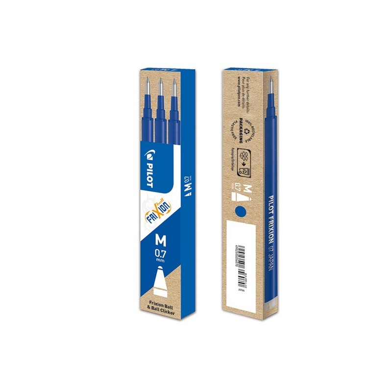 Set 3 Refill per FRIXION ball e clicker. Punta 0,7mm. Colore: blu.