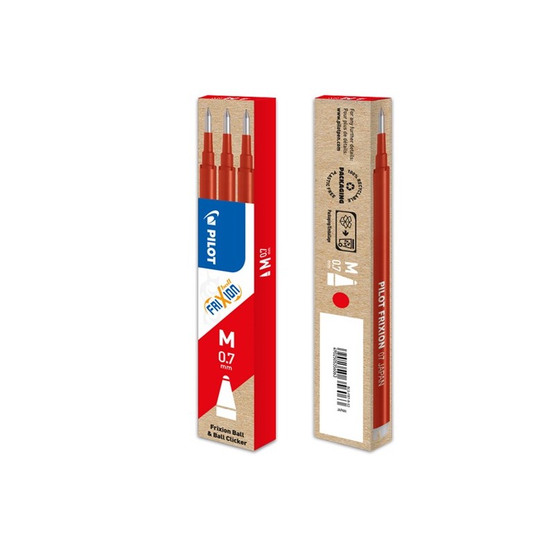 Set 3 Refill per FRIXION ball e clicker. Punta 0,7mm. Colore: rosso.