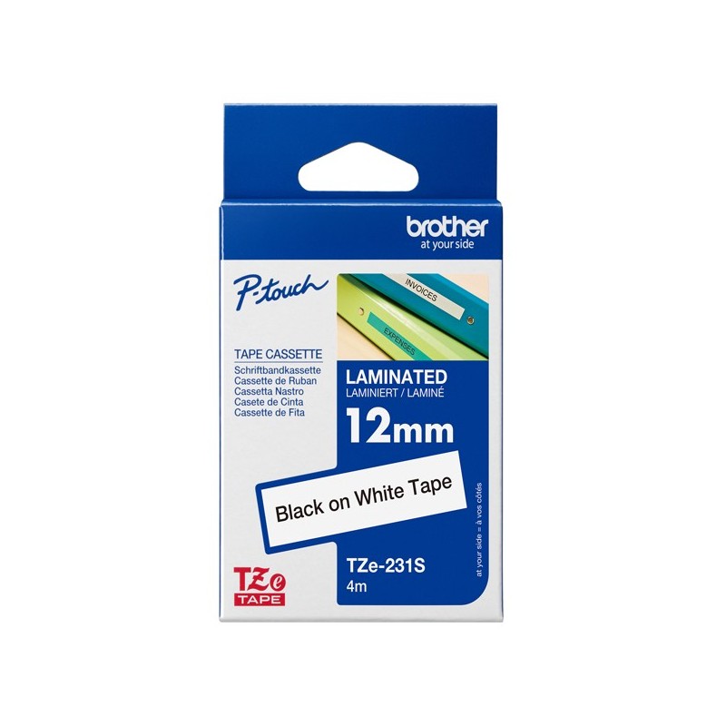 Brother Nastro laminato Nero/Bianco 12MM x 4mt -TZE231S2
