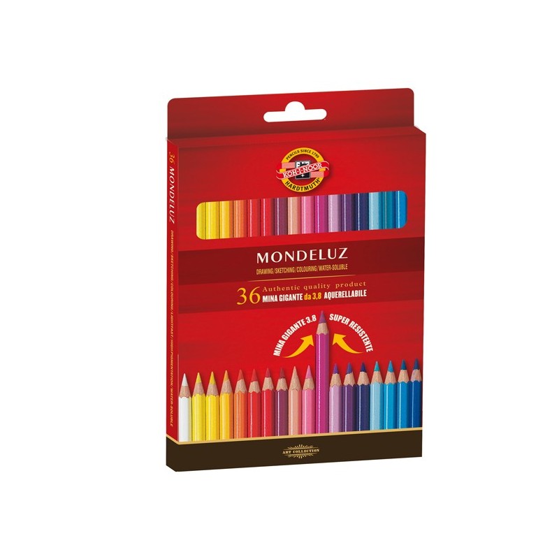 Matite colorate acquerellabili. Sezione esagonale. Diametro fusto 7mm. Legno di cedro di prima qualità in tanti colori brillanti. Mina gigante da 3,8mm.La mina si scioglie completamente. Lunghezza 175mm.