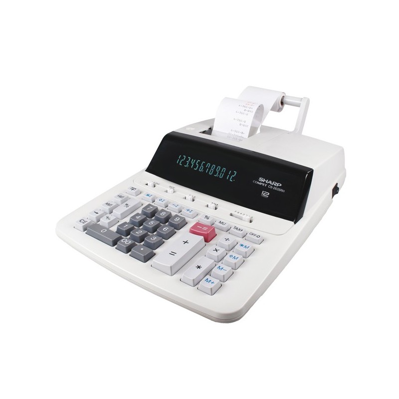 Calacolatrice grande professionale, 12 cifre digitron display, 2 colori di stampe a 4.5 linee/s, alim. a rete, conversione di valute, contatore di oggetti, premio/sconto (MU), scatola, grigia.ALIMENTATORE COMPRESO
