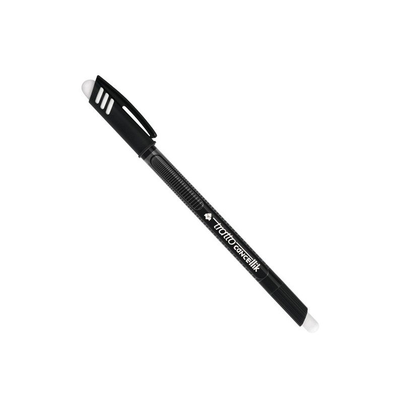 Inchiostro permanente dopo 24h. Cappuccio anti soffocamento. Spazio per la personalizzazione. Fusto e cappuccio nel colore dell'inchiostro. La penna è dotata di doppia gomma : sul fusto e sul cappuccio. Punta 1,0mm. Colore: nero.