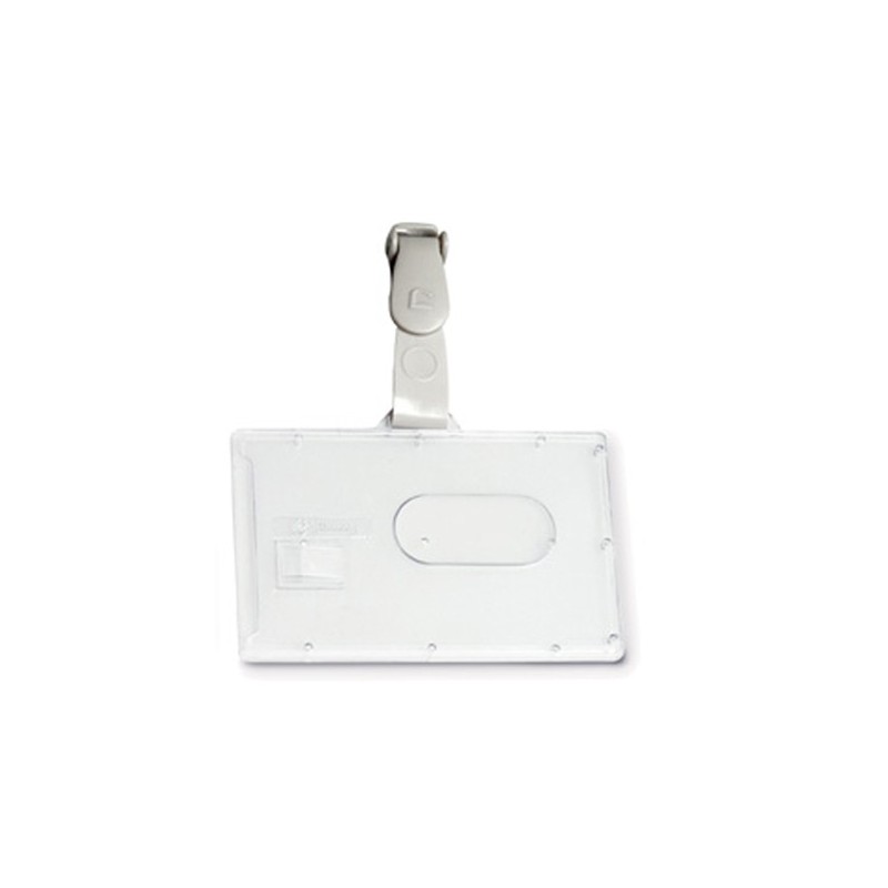 Portabadge rigido in edistir trasparente. Dotato di apposito spazio per facilitare l'estrazione del badge e molletta di sicurezza. Clip in plastica.