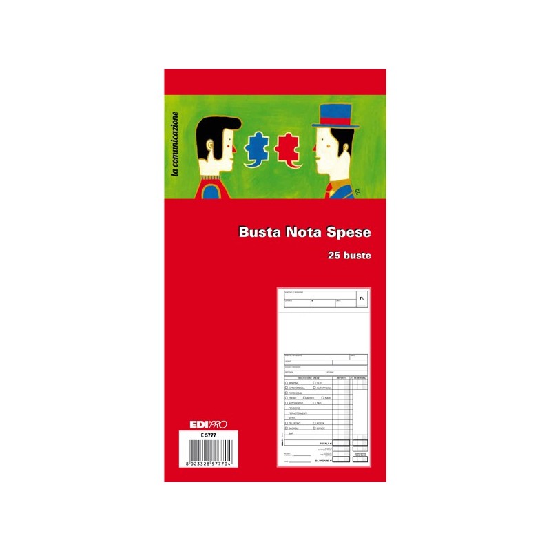 BLOCCO 25 BUSTE NOTA SPESE. Formato 28x15cm.