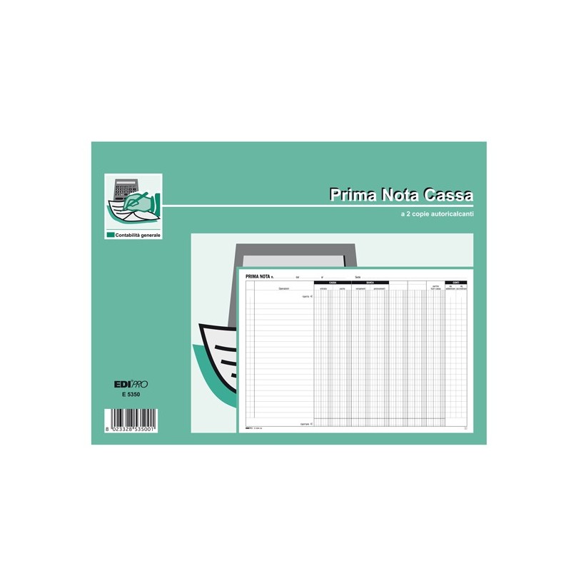 BLOCCO PRIMA NOTA CASSA- BANCA. Formato 22 x 30cm. 50 fogli. 2 copie ric.
